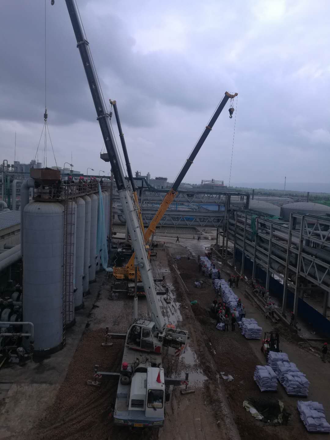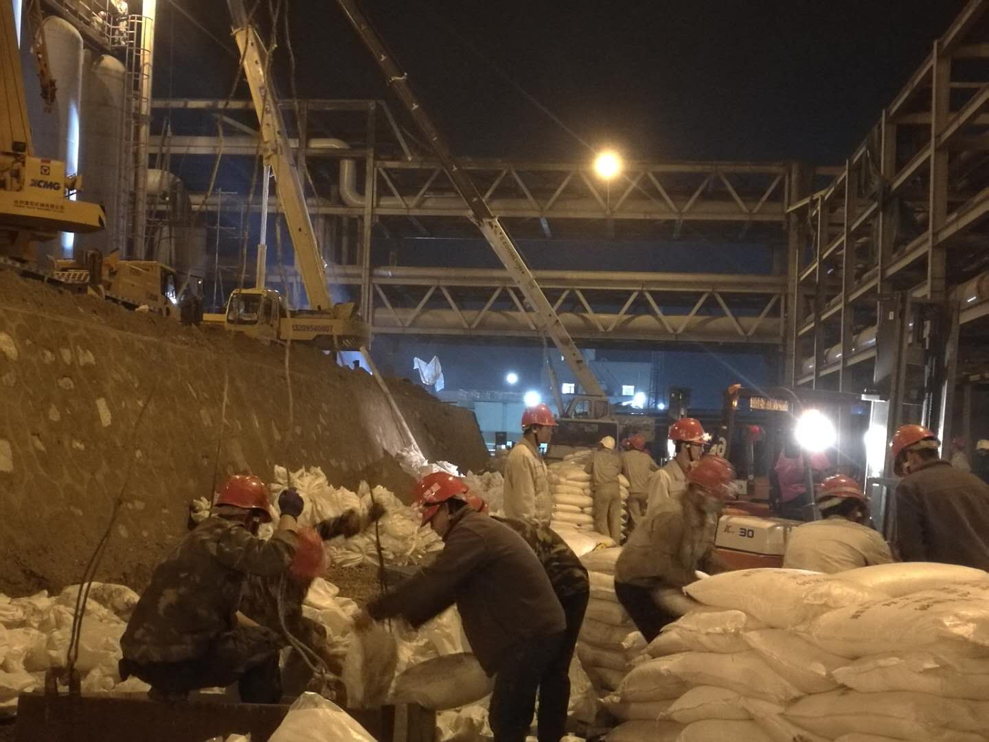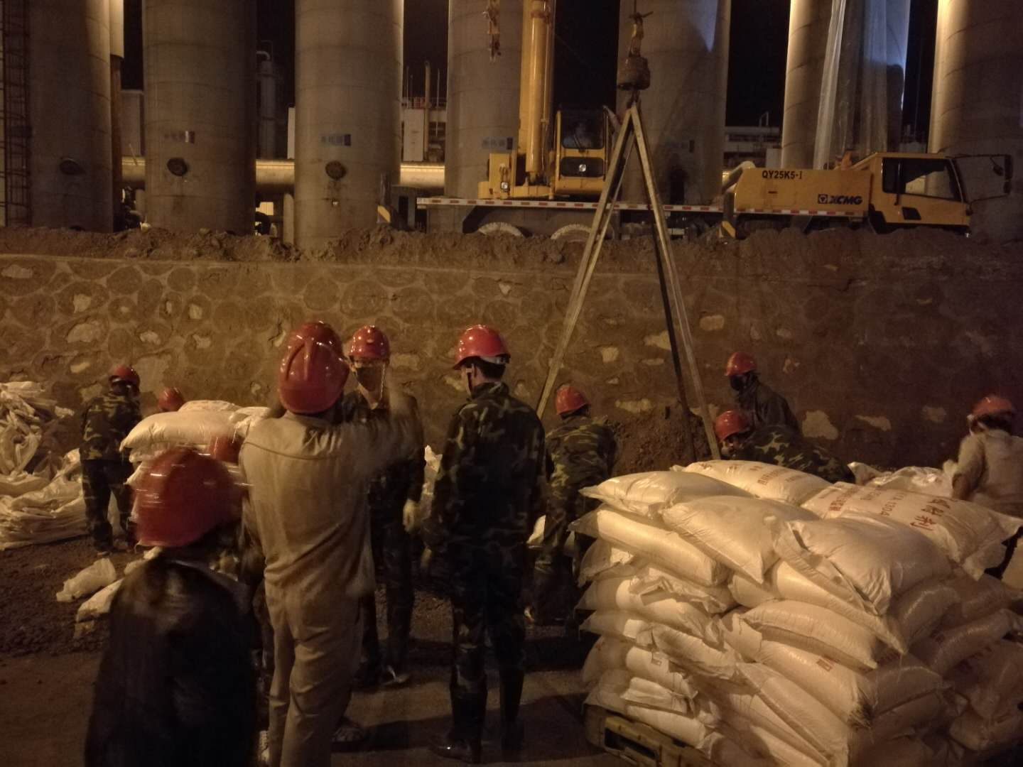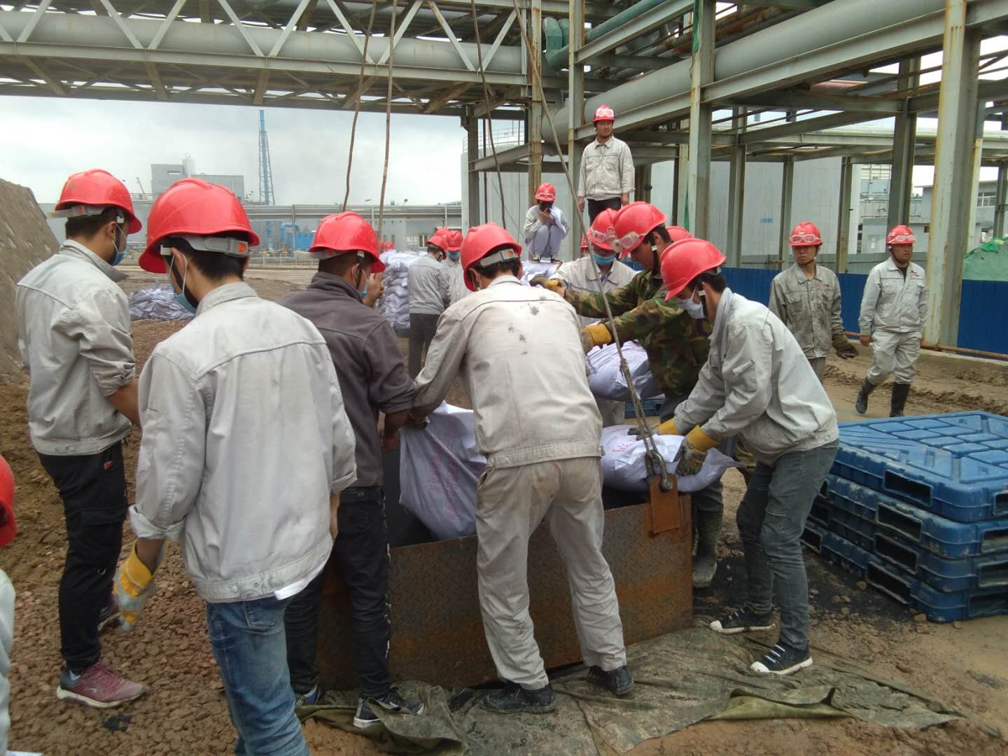 7月4日中午12時,連續(xù)幾天的陰雨天終于暫停,盡管天公不作美,烏云密布,隨時會下雨,但對奮戰(zhàn)在廣拓化工一線的檢修者們來說,雨住了就是最好的消息。因為決定化工系統(tǒng)能否按時開車的關(guān)鍵項目,本次計劃檢修的重頭戲--乙炔干燥更換吸附劑工作終于能開始了。“趕快安排吃飯,抽調(diào)一切力量,13時準(zhǔn)時到場協(xié)助檢修,我們要與天氣賽跑,趕在下雨前完成乙炔干燥吸附劑的填充工作。”隨著化工公司總經(jīng)理賈存富的一聲令下,各裝置、科室應(yīng)聲而動,積極組織人員參與到檢修工作中,一場與天氣賽跑的搶修大戲開始了……