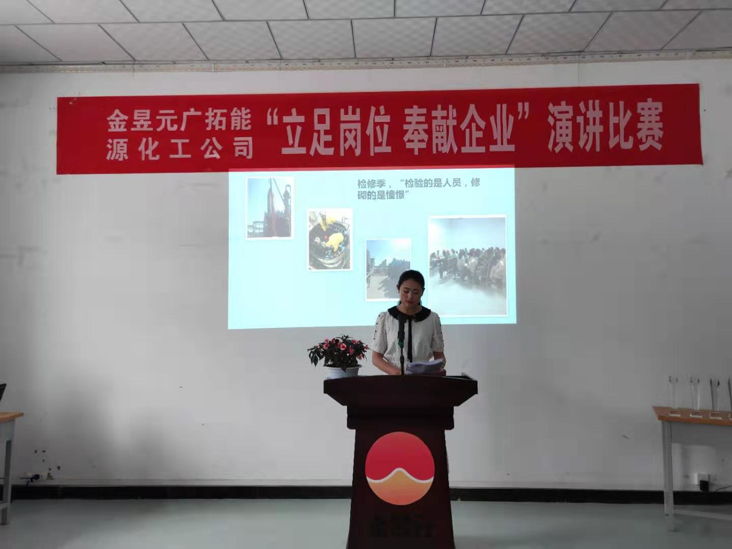 2019年7月24日,寧夏金昱元廣拓能源化工公司舉辦“立足崗位 奉獻(xiàn)企業(yè)”為主題的企業(yè)文化演講比賽。