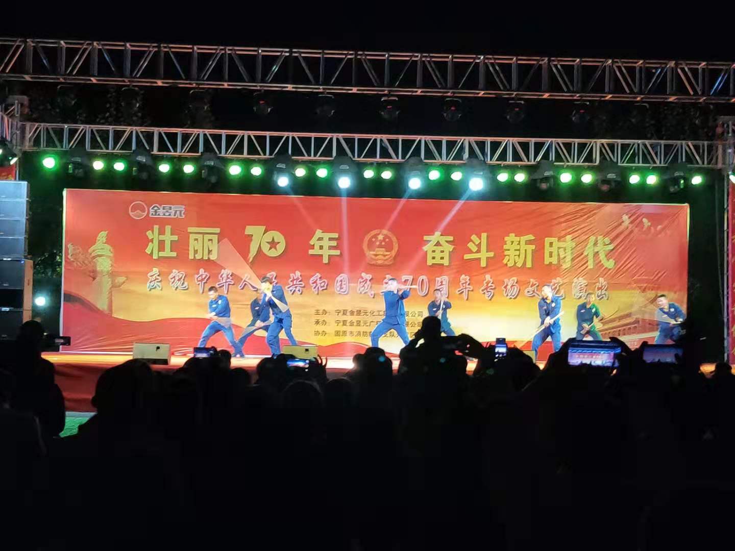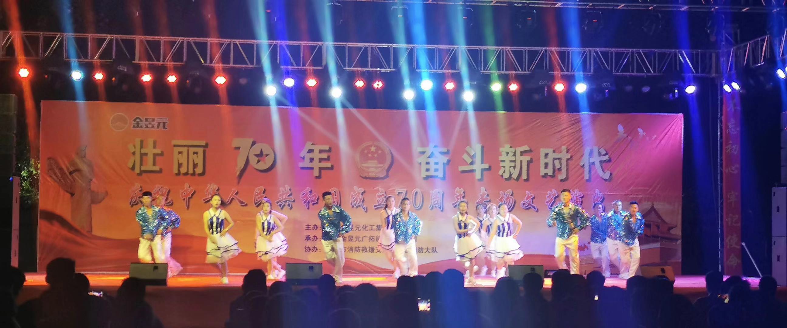 為慶祝新中國成立70周年,寧夏金昱元化工集團攜手固原市開發(fā)區(qū)消防大隊舉辦了以“壯麗70年,奮斗新時代”為主題的文藝匯演晚會,2019年9月26日晚,文藝匯演來到固原片區(qū),固原經濟開發(fā)區(qū)管委會,固原市工信局,固原市消防救援支隊開發(fā)區(qū)消防大隊,集團公司、固原片區(qū)相關領導以及各子公司職工代表,外協(xié)單位共計400余人觀看了本次文藝匯演活動。