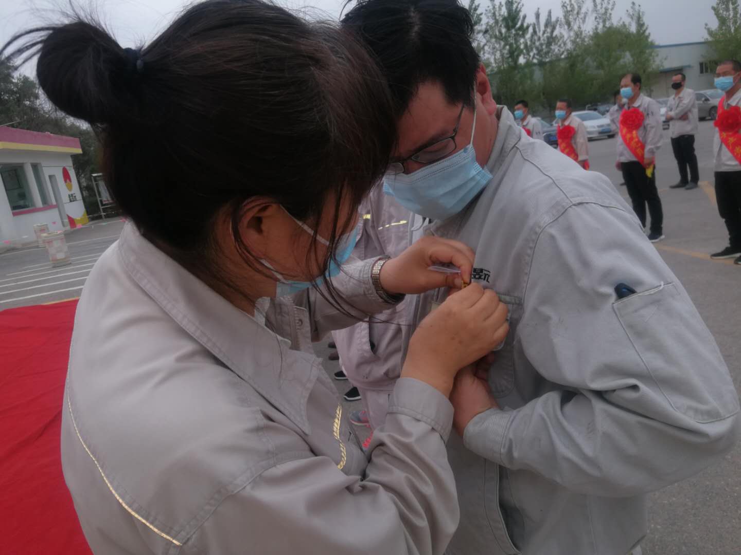 此次主題黨日活動首先由集團公司尚總帶領全體黨員重溫入黨誓詞,然后由老黨員為新黨員佩戴黨徽,并面對黨旗進行宣誓。第三項由王主席宣布對年度先進黨支部、優(yōu)秀黨務工作者、優(yōu)秀共產(chǎn)黨員的表彰決定并頒發(fā)獎品。會議最后一項,由尚總帶領所有黨員開展了一次黨員公諾活動。