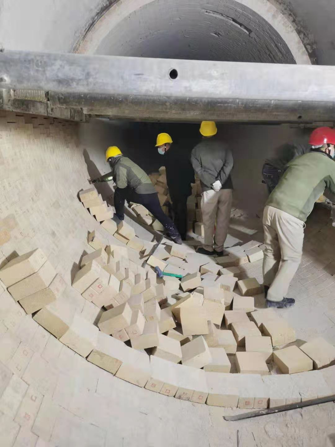 入窯鉸刀更換結束后,幾名維修工再一次細致的對鉸刀附屬設備進行檢查,確;剞D窯開啟后入窯鉸刀能夠長周期穩(wěn)定運行。回轉窯內,平時的崗位巡檢操作工變身砌磚師傅,對窯磚進行砌筑。大家配合默契,像極了從事砌磚行業(yè)多年的老師傅。窯頭平臺上,頂著寒風搬磚的是各裝置協(xié)調的員工。一方有難八方支援,不管回轉窯還是電石爐,都是資源再生公司的設備。哪兒檢修,其他裝置馬上協(xié)調人員配合。一次檢修就是一次考驗,不僅要保安全保進度,還要保證檢修質量。各級管理人員在保證安全的前提下對窯磚砌筑質量進行檢查,確保檢修質量。