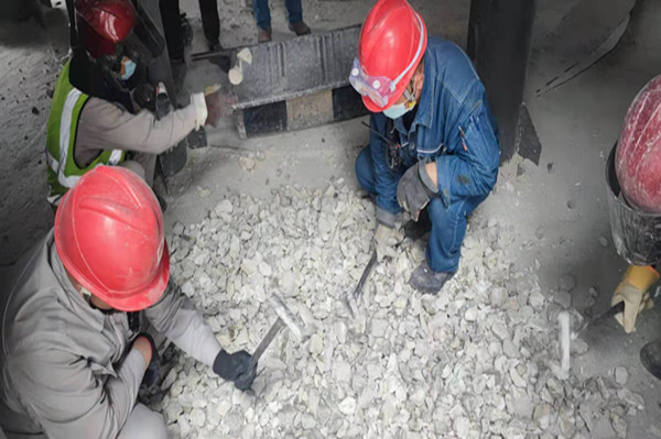 嚴(yán)格執(zhí)行白灰窯燒嘴看火及出灰探料管理機(jī)制;白灰窯崗位每班安排1-2個(gè)人,每小時(shí)使用鋼釬對(duì)四層燒嘴處沉料情況進(jìn)行確認(rèn),每次出灰必須檢查出灰機(jī)內(nèi)是否有結(jié)瘤。發(fā)現(xiàn)燒嘴處物料燒結(jié)不沉料時(shí),立即關(guān)小或關(guān)閉相對(duì)應(yīng)的煤氣閥門,等待觀察沉料情況。發(fā)現(xiàn)出灰機(jī)有結(jié)瘤無法正常出料時(shí),立即組織人員清理結(jié)瘤,避免物料煅燒超時(shí)燒結(jié)。