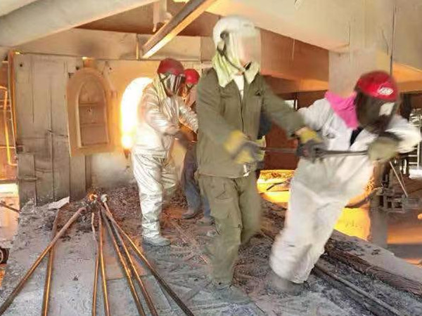 無(wú)論是嚴(yán)冬還是酷暑,走進(jìn)資源再生電石出爐現(xiàn)場(chǎng),就能看見(jiàn)這么一群“全副武裝”的職工,身著隔熱服,頭裹防高溫面罩,手戴著“手燜子”,腳著厚勞保;他們同心協(xié)力,干勁十足得揮舞著手中的鋼釬,鋼釬在爐眼里來(lái)回穿梭,將近2000攝氏度高溫的電石緩緩流入電石鍋,這一群人就是電石生產(chǎn)中最可親可愛(ài)的“出爐工”。