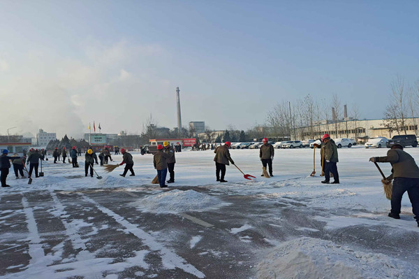 在除雪過程中,領(lǐng)導們始終與員工們并肩作戰(zhàn),他們不僅是指揮者,更是參與者。當遇到積雪結(jié)冰難以清理時,領(lǐng)導們與員工們共同商議對策,現(xiàn)場調(diào)配資源。他們親自上陣,與員工們一起喊著口號,齊心協(xié)力將積雪堆攻克。