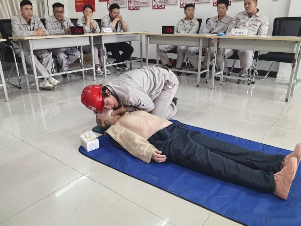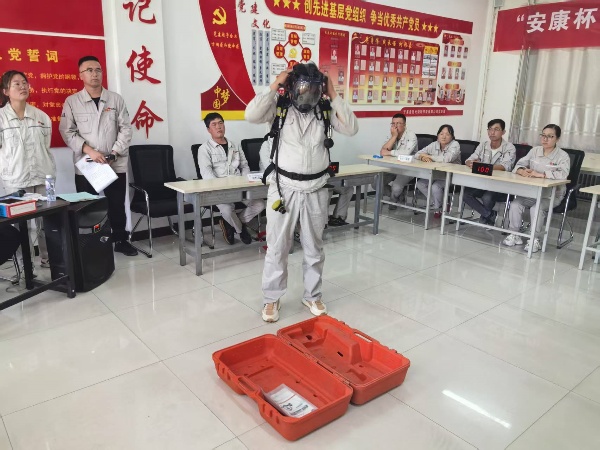 比賽現(xiàn)場,參賽隊員們個個精神抖擻、斗志昂揚!靶姆螐(fù)蘇操作”“正壓式空氣呼吸器穿戴”兩個項目,選手們爭分奪秒?yún)s有條不紊:檢查患者意識和呼吸、檢查氣瓶壓力、調(diào)整背帶松緊、佩戴面罩并測試氣密性……一套流程行云流水,展現(xiàn)出扎實的技能功底與高度的安全意識;顒蝇F(xiàn)場,公司安全總監(jiān)鐵旭東、安全主管何寧、海什全程監(jiān)督評分,并針對操作細(xì)節(jié)進行實時監(jiān)控,將比賽轉(zhuǎn)化為安全培訓(xùn)課堂,達到競賽和培訓(xùn)相結(jié)合。參賽職工紛紛表示,通過比武不僅提升了應(yīng)急處置能力,更深刻體會到規(guī)范操作的重要性。