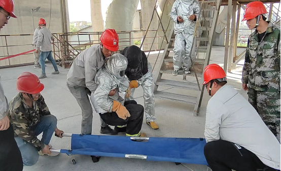 結(jié)合各生產(chǎn)崗位實(shí)際,化整為零組織開(kāi)展了“高處墜落”“預(yù)熱器物料灼燙”“高壓開(kāi)關(guān)柜著火”“鹽酸灼燙”“夏季高溫中暑”事故應(yīng)急救援演練,通過(guò)模擬實(shí)戰(zhàn)場(chǎng)景,提升全員快速反應(yīng)能力,強(qiáng)化應(yīng)急處置水平。
