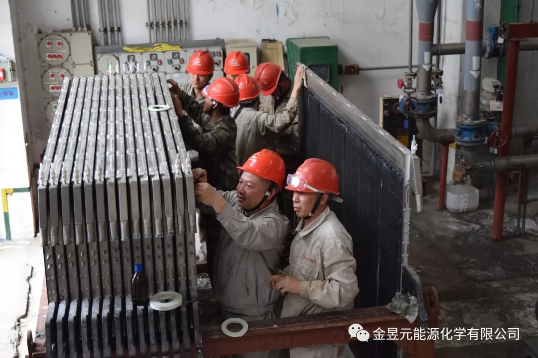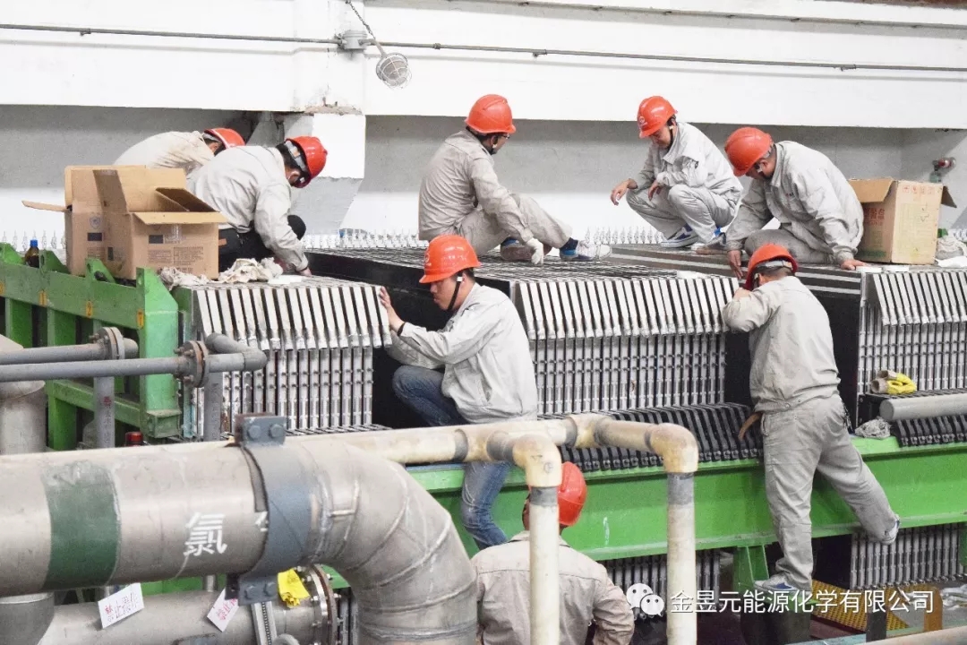 離子膜裝置B槽檢修作業(yè)現(xiàn)場,裝置將去年A槽檢修換膜總結的經(jīng)驗和方法充分運用到此次作業(yè)中,同時裝置檢修人員積極與廠家技術人員在鏟膠、貼膠、貼膜等作業(yè)方法和技術上進行廣泛的交流學習,有效加快了檢修進度。