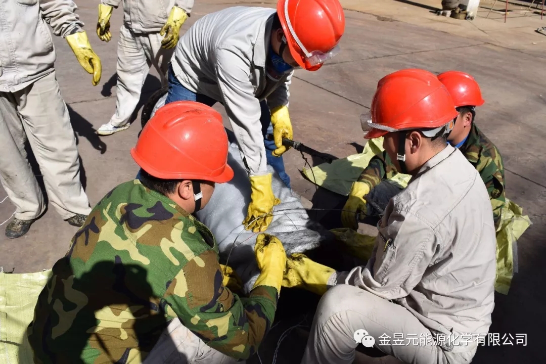 氯乙烯裝置檢修現(xiàn)場,檢修人員正四、五人一組,齊心協(xié)力的給除霧器濾筒裹上厚厚的“棉衣”,為檢修VI轉(zhuǎn)化除霧器做好準備工作。