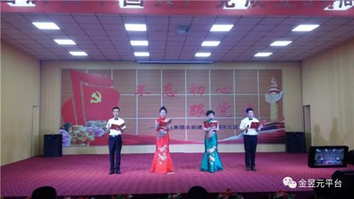 會后,以“不忘初心跟黨走”為主題,舉辦了慶祝建黨97周年文藝演出,演出圍繞“頌歌獻(xiàn)給黨”這一主要演出內(nèi)容,以歌舞、大合唱、詩朗誦、四重唱為主要表現(xiàn)形式,還自編創(chuàng)作了小品《我想入黨》,音樂快板《幸福金昱元》,營造了歌頌黨、歌頌人民、歌頌改革開放和企業(yè)發(fā)展取得的偉大成就,暢想新時代、中國夢。