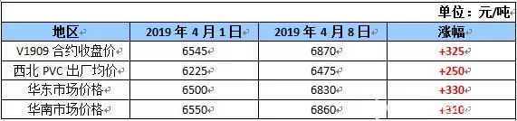 沉寂3個月的PVC,踏入4月后表現(xiàn)可謂突飛猛進。尤其在PVC期貨實現(xiàn)移倉換月后,漲價動能得到充分激發(fā),大舉突破震蕩狀態(tài),從4月1日至4月8日,大商所V1909合約收盤價漲幅近5.0%。而PVC生產(chǎn)廠家在庫存低位的情況下看漲情緒較強,助推漲價潮在短時間內(nèi)愈演愈烈。