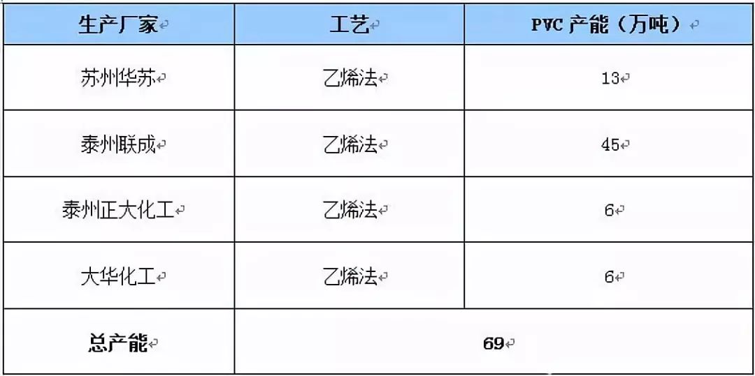 表3 江蘇省PVC產(chǎn)能統(tǒng)計