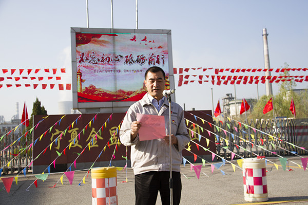 升國旗儀式伊始,集團(tuán)公司黨委副書記王立軍,集團(tuán)公司副總裁、青銅峽片區(qū)總經(jīng)理尚興向升國旗儀式致辭。