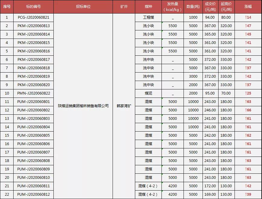 昨日,榆林地區(qū)陜煤旗下六大煤礦最新競價結(jié)果公布,成交價最高漲幅達(dá)到32元/噸。