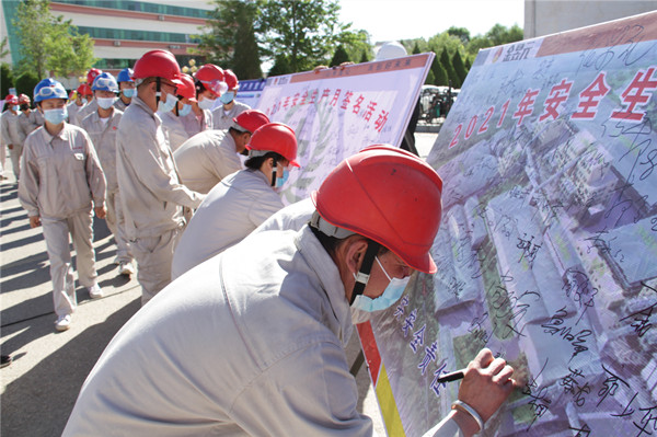 參加活動(dòng)儀式人員在簽字板上鄭重簽下自己的名字,一諾千金,擲地有聲。他們將恪守承諾,牢固樹立安全意識(shí),嚴(yán)格遵守集團(tuán)公司各項(xiàng)安全管理規(guī)定,共同維護(hù)企業(yè)安全穩(wěn)定局面。