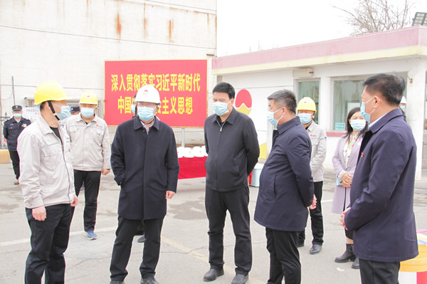 調(diào)研組深入一線,了解集團(tuán)公司疫情防控情況,并聆聽工作人員宣讀《入廠安全教育》。