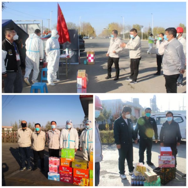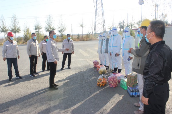 為提振士氣、鼓舞斗志,堅(jiān)決打贏疫情防控阻擊戰(zhàn),10月31日、11月1日,寧夏金昱元化工集團(tuán)股份有限公司總裁喬冠榮,監(jiān)事會(huì)主席郭復(fù)生,黨委副書記尚興,副總裁、固原片區(qū)總經(jīng)理王立軍,副總裁、青銅峽片區(qū)總經(jīng)理張立軍等領(lǐng)導(dǎo)組成慰問組,分別到固原片區(qū)和青銅峽片區(qū)各疫情防控卡點(diǎn)慰問奮戰(zhàn)在一線的防疫人員。