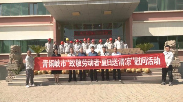青銅峽市總工會(huì)和固原經(jīng)濟(jì)開發(fā)區(qū)總工會(huì)為集團(tuán)公司送來西瓜、礦泉水、金絲菊、冰糖等防暑物品,表達(dá)對(duì)企業(yè)一線員工關(guān)心和厚愛。
