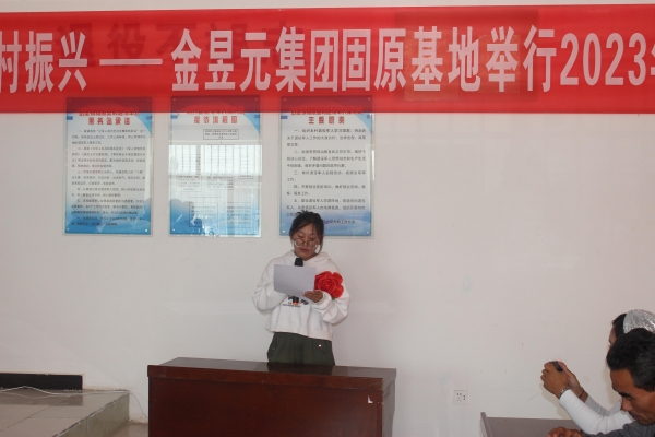 彭堡鎮(zhèn)黨委書記范亞寧、人大主席呂維兵,原州區(qū)綜合執(zhí)法局駐村工作組負(fù)責(zé)人王鑫,楊忠堡村書記童正武;金昱元化工集團(tuán)黨委副書記、工會(huì)主席尚興,集團(tuán)公司副總裁、固原基地黨委書記王立軍,固原基地工會(huì)主席劉志江、女工主任張靜出席儀式。