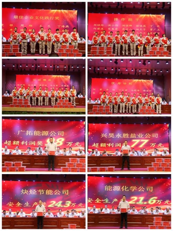 大會(huì)對(duì)一年來涌現(xiàn)出積極進(jìn)取、勇于開拓、奮發(fā)有為,為公司穩(wěn)定發(fā)展作出突出貢獻(xiàn)的45個(gè)先進(jìn)集體和123名先進(jìn)個(gè)人進(jìn)行了表彰。對(duì)獲得“超額利潤獎(jiǎng)”的廣拓能源公司、興昊永勝鹽業(yè)公司、炔烴節(jié)能公司、資源循環(huán)公司、股份公司供應(yīng)部、華峰塑膠公司、能源化學(xué)公司,分別給予97萬元、77萬元、30萬元、29萬元、28萬元、15萬元、8萬元現(xiàn)金獎(jiǎng)勵(lì);對(duì)獲得“安全生產(chǎn)獎(jiǎng)”的炔烴節(jié)能公司、能源化學(xué)公司、廣拓能源公司、興昊永勝鹽業(yè)公司、資源循環(huán)公司、華峰塑膠公司,分別給予24.3萬元、21.6萬元、18萬元、18萬元、14.4萬元、4.5萬元現(xiàn)金獎(jiǎng)勵(lì)。通過表彰,激勵(lì)各單位和全體員工以先進(jìn)集體與個(gè)人為榜樣,繼續(xù)發(fā)揚(yáng)“團(tuán)結(jié)、拼搏、求實(shí)、創(chuàng)新”的企業(yè)精神,以更加飽滿的熱情和積極的作風(fēng)投入到企業(yè)發(fā)展建設(shè)中,全力推動(dòng)2025年各項(xiàng)工作順利開展。