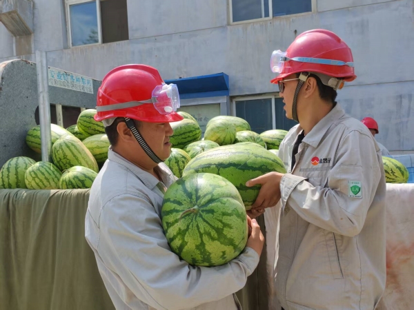 高溫猛如虎,關(guān)愛深似海。公司領(lǐng)導(dǎo)把西瓜和飲料等慰問品送到員工手中,將濃濃關(guān)愛送到員工心中。公司領(lǐng)導(dǎo)對員工們致以親切的問候,對他們在酷熱的夏天堅(jiān)守崗位、默默奉獻(xiàn)致以崇高的敬意。員工們對領(lǐng)導(dǎo)的慰問如飲甘泉,信心倍增。