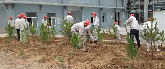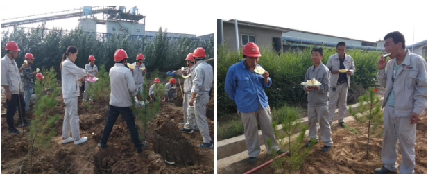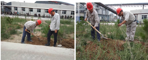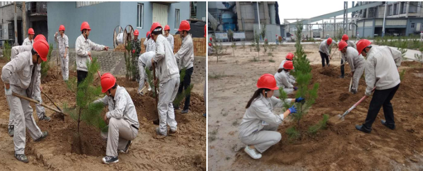 勞動過程中,領導處處帶頭,員工們熱情高漲,選樹苗、挖樹坑、填底土、種樹、澆水、修剪樹枝,干勁十足,整個廠區(qū)變得熱鬧起來。