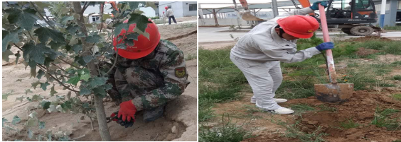 他們對綠化植物進行現場清理,根據土質特點栽種不同的樹木、花卉;對原有綠化部分缺損的樹木進行補種;對已成活花草樹木進行修剪、施肥;將精細化管理貫穿到整個植樹綠化活動中,確保樹木的健康生長和綠化效果。