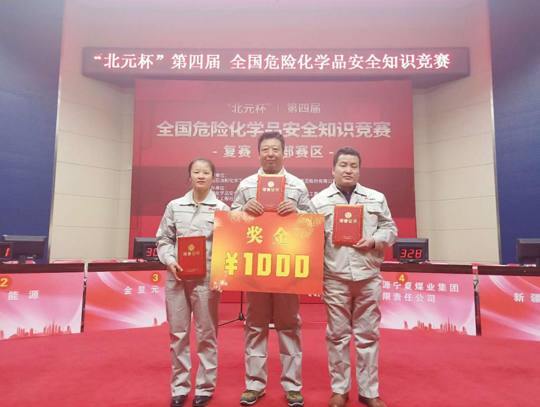 2018年12月7日,由中國石油和化學(xué)工業(yè)聯(lián)合會指導(dǎo),中國化學(xué)品安全協(xié)會、中國化工報社主辦,陜西北元化工集團股份有限公司冠名,鄂爾多斯大路煤化工基地管委會協(xié)辦,國家能源寧夏煤業(yè)集團有限責(zé)任公司承辦的“北元杯”第四屆全國危險化學(xué)品安全知識競賽西部區(qū)復(fù)賽在寧夏銀川寧東能源基地舉行。集團公司受邀參加此次比賽,公司領(lǐng)導(dǎo)高度重視,經(jīng)過選拔,挑選出安全知識豐富、生產(chǎn)經(jīng)驗較強、業(yè)務(wù)能力突出的3名員工組成代表隊及20多人組成的啦啦隊參加比賽,并獲得了第三名好成績。