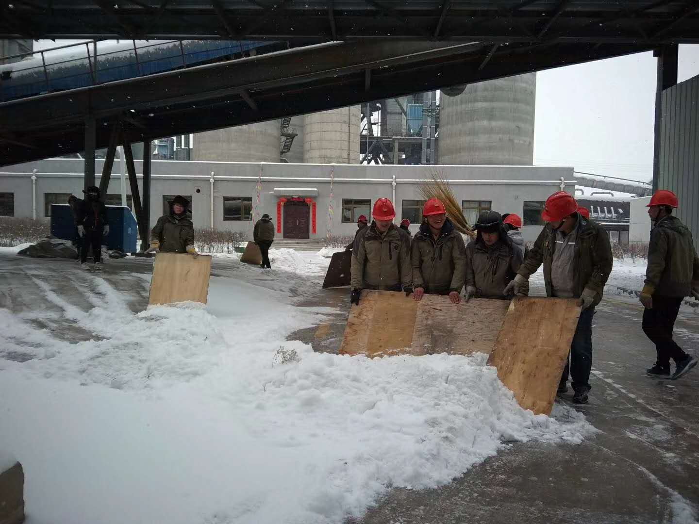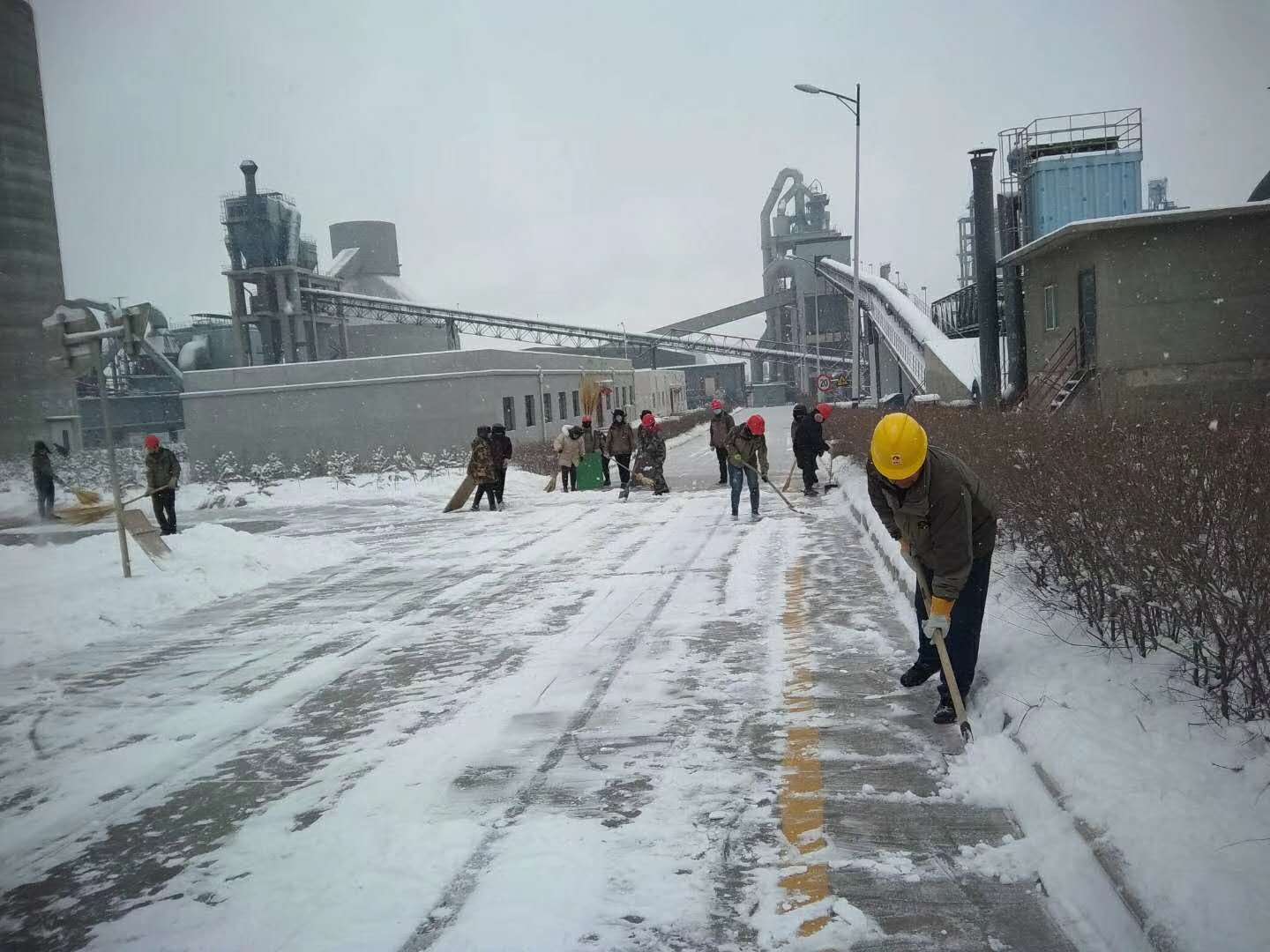 室外氣溫達(dá)-10℃,但絲毫未動(dòng)搖大家清掃積雪的決心,大家分工明確,拿起鐵鍬、掃帚等工具,組建成多支掃雪隊(duì)伍,有的用鐵鍬將雪鏟到路邊,有的用掃帚將遺漏的積雪匯集一處,大家不畏嚴(yán)寒、積極主動(dòng)、相互配合、你掃我鏟,大家心往一處想,勁往一處使,經(jīng)過兩個(gè)多小時(shí)的奮戰(zhàn),終于將公司的主要入口、主干道等地的積雪全部鏟除,為員工開辟了一條洋溢著溫情的通暢道路,雖然大家的衣服、鞋子都弄濕了,也出了一身的汗,可看著眼前的成果,每個(gè)人的臉上都洋溢著開心的笑容。