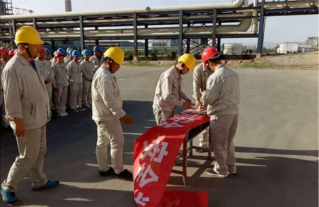 隨后總經(jīng)理尚繼榮帶領(lǐng)大家宣讀以:“我是金昱元集團(tuán)一名員工,為了個(gè)人安全健康,為了家庭幸福美滿,為了公司穩(wěn)步發(fā)展,我鄭重宣誓:忠誠(chéng)企業(yè),恪盡職守,關(guān)注安全,珍愛生命。我堅(jiān)決做到:牢記安全第一,遵守規(guī)章制度,遵守操作規(guī)程,遵守勞動(dòng)紀(jì)律,不違章,不冒險(xiǎn),不留隱患,不出事故。我將以實(shí)際行動(dòng),爭(zhēng)做安全合格員工,確保生產(chǎn)安全,讓企業(yè)放心”為內(nèi)容的安全誓詞。最后,在尚總的帶頭下,所有參會(huì)人員在“防風(fēng)險(xiǎn)、除隱患、遏事故”的條幅上簽名,承諾自己將以的實(shí)際行動(dòng),履行好本崗位的安全職責(zé)。簡(jiǎn)單的一個(gè)簽名不僅簽下對(duì)自己和家人的一份責(zé)任,同時(shí)也簽下對(duì)企業(yè)安全發(fā)展的一個(gè)承諾。