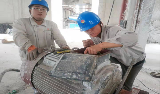酷暑難當!我還只是走走停停就已經(jīng)大汗淋漓,更何況我們可愛的工友們。進入到電儀裝置現(xiàn)場,這些工友們,真的是恨不得將一個人分成兩個人用,他們是公司安全用電及技改的重要力量,這幾天,他們冒著酷暑,頂著作業(yè)銜接與催促,積極推進檢修進度,他們完成修復(fù)了1102皮帶拉繩開關(guān)及跑偏開關(guān)的檢修、完成了熟料庫頂2825M離心風機及2622M斜拉鏈機電機及接線盒的檢修、完成了更換頭排風機變頻柜分機以及二次配料底2111M,2031M,2025M斜槽風機電機及接線盒的檢修。