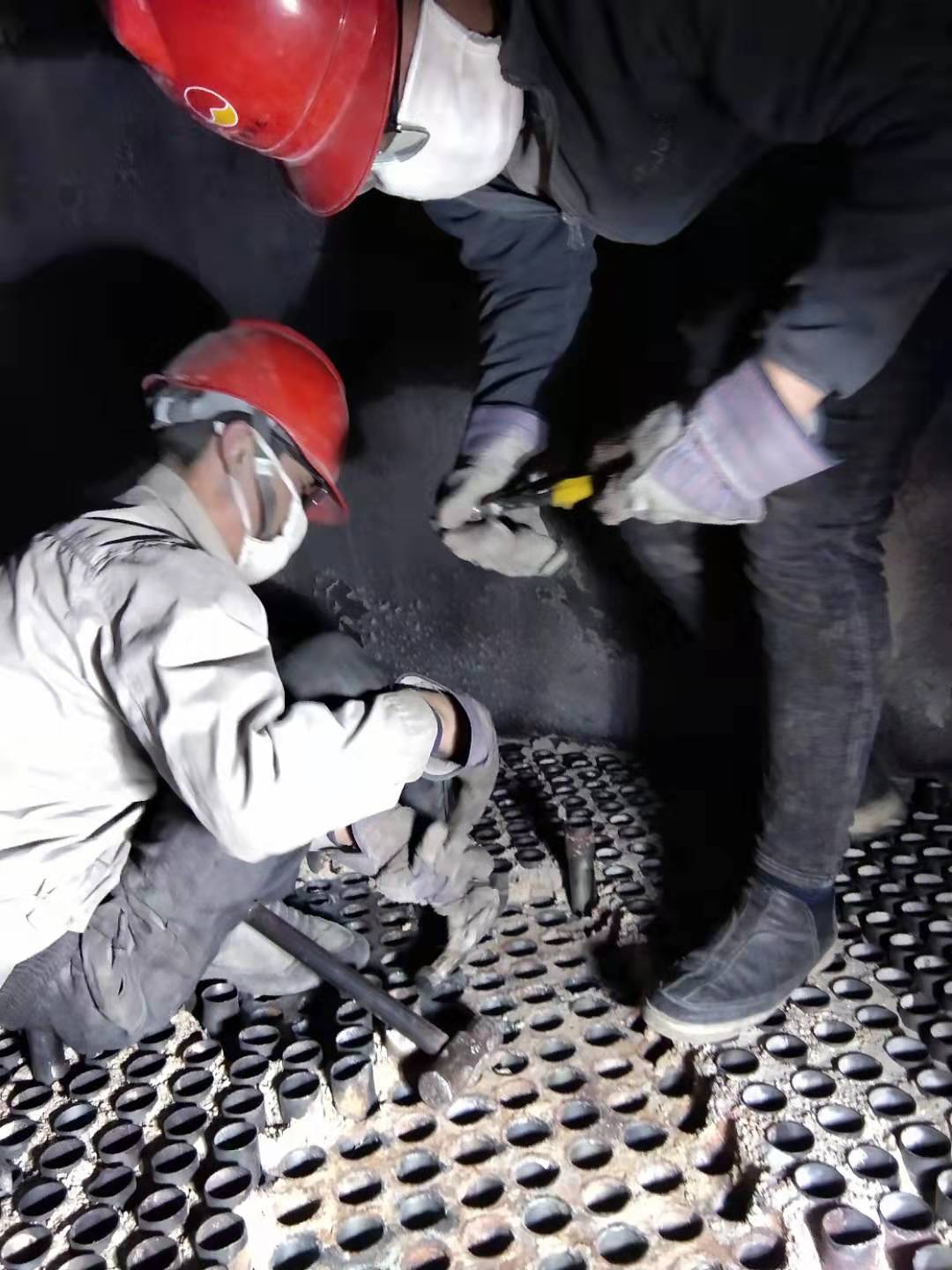 而另一邊,脫硫塔底積料清理卻迎上了這寒冬的冷意,塔里潮濕又冷,光線又黑暗,與塔外的氣候可以說是“有過之而無不及”。塔底的積水沒過膝蓋,從外向里望去就像個(gè)黑乎乎的“水缸”,只見我們檢修人員二話不說穿上雨鞋,冒著塔里零下五六度的低溫鉆進(jìn)去開始工作,塔內(nèi)淤泥被他們用鐵鍬不斷鏟向外面,從塔內(nèi)出來的時(shí)候衣服已經(jīng)濕了半截凍得瑟瑟發(fā)抖,可是沒有半點(diǎn)怨言,而主人翁的能動(dòng)性和著齊心協(xié)力描繪出了冬日里一道充滿暖意的風(fēng)景!