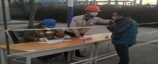 在原料堆場(chǎng),檢查登記、消毒,全力進(jìn)行“疫情”防控工作。