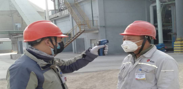 在公司北大門,他們對進出廠區(qū)職工及車輛登記,嚴格“疫情”防控工作。