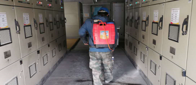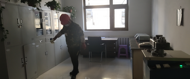 對(duì)廠區(qū)衛(wèi)生間消毒。