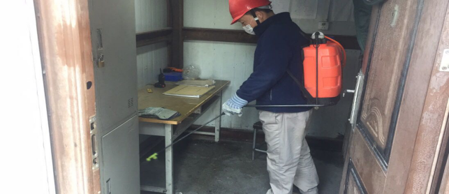 在崗位辦公室消毒。