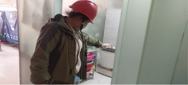 擦拭操作臺(tái)、門把手,工作的有條不紊。