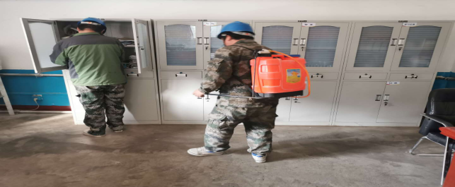 在崗位辦公室消毒。