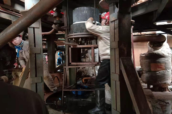 燈頭是蒸汽爐最核心的部件,它就如同蒸汽爐的“心臟”,保證著蒸汽爐的安全平穩(wěn)運行。由于燈頭是石英材質,不能有任何碰撞。有著二十年檢修工作經驗沈培銀老師傅,像一名“將軍”一樣,指揮著大家拆燈頭,滿身的油污,像軍功章一樣掛在他的胸前。只見他拿來三根全絲螺桿,均勻地固定在燈頭支座上,隨著三只螺母的松動,燈頭就開始慢慢地向下移動,為了保證燈頭的平穩(wěn)下落,三個人必須同時松動螺母,這需要高度默契地配合。 沈培銀老師傅不緊不慢地松動著螺母,并時刻提醒著其他兩個人的進度。汗水早已濕透了三人的衣服,裹挾著污漬的汗水不停地順著他們的臉頰滴落。愛開玩笑的同事,不失時機地說個笑話,逗得大家哈哈大笑,身上的疲憊感頓時消減幾分。