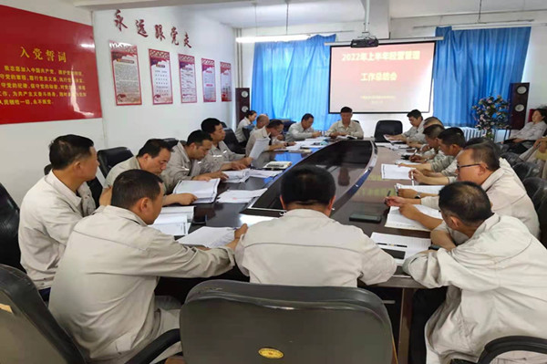 其次安環(huán)科科科長從事故隱患查處,開展返三違活動、安全環(huán)保、固廢渣場等工作開展情況及存在問題中分析了不足,對下半年各項重點工作開展情況做出規(guī)劃,及要求。之后綜合科科長從上半年目標任務(wù)完成情況、主要物料消耗情況、綜合成本利潤完成情況、質(zhì)量目標完成情況、設(shè)備、工藝指標完成情況、企業(yè)文化建設(shè)、黨建精神文明、疫情防控工作及綜合治理逐一進行了匯報,并對開展工作中的不足及采取的措施進行了詳細分析。