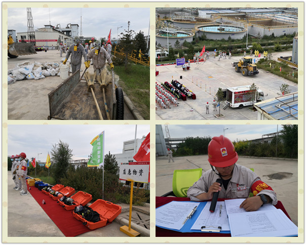 “報(bào)告總指揮,各演練部門準(zhǔn)備完畢,氯乙烯球罐單體泄漏應(yīng)急演練是否開始。”“開始!”隨著演練總指揮、片區(qū)副總經(jīng)理、廣拓能源總經(jīng)理賈存富的一聲令下,應(yīng)急演練正式開始!北敬窝菥氃O(shè)定為一般突發(fā)事件應(yīng)急響應(yīng),演練內(nèi)容是:廣拓能源有限公司廢酸處理稀硫酸罐排污閥泄露,由于稀硫酸泄漏量較大,啟動突發(fā)應(yīng)急預(yù)案。主要演練現(xiàn)場警戒、人員撤離、筑壩攔截預(yù)防稀硫酸外溢、危險(xiǎn)廢物收集。