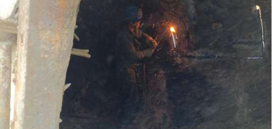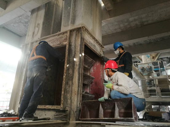 選粉機(jī)進(jìn)行補(bǔ)焊風(fēng)格輪,由于作業(yè)空間狹小,不好展開工作,他們克服困難,在保證安全第一的情況下順利完成檢修工作任務(wù)。
