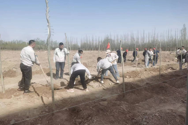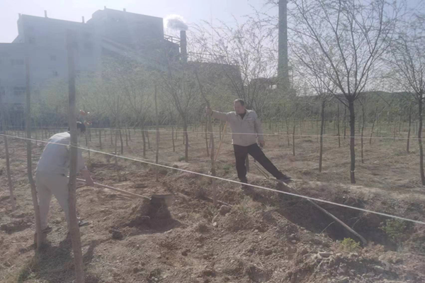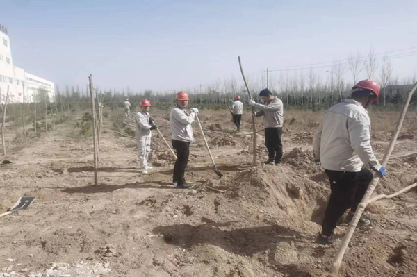 春光明媚的四月,萬物復(fù)蘇,春風(fēng)吹綠了枝頭上的嫩芽,吹綠了地上的小草,大地上的每一個(gè)角落都充滿了春天的氣息。在這美好的季節(jié),公司全體領(lǐng)導(dǎo)干部和一線員工積極、主動(dòng)參與植樹活動(dòng)。植樹現(xiàn)場(chǎng),大家干勁十足,挽起衣袖、拿起鐵鍬,為一棵棵新樹苗安置"新家"。今年種植新疆楊2200多棵、絲綿木650棵、大松樹近300棵、小榆樹30000棵,為新的春天又增添了一抹盎然的綠意?粗且黄约河H手種下的樹苗在微風(fēng)中搖曳,無不露出幸福的笑容,在一張張的照片中和鏡頭里留下了自己美好的回憶。