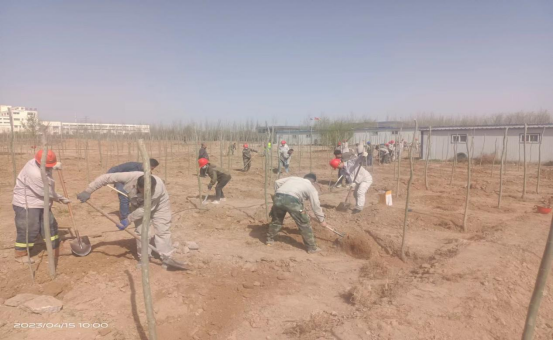 公司每年的春季都會制定本年度的環(huán)保節(jié)能目標(biāo),對廠區(qū)內(nèi)的綠化設(shè)施進(jìn)行完善,加大綠化面積,組織一年一度的植樹活動。由于公司主要是生產(chǎn)建筑材料的,以普通硅酸鹽水泥和水泥原材料熟料為主的化工企業(yè),必不可少的廠區(qū)硬化占到了一定的面積,導(dǎo)致綠化覆蓋率較少。但是就是這樣的條件下,公司領(lǐng)導(dǎo)還是在有限的廠區(qū)綠化面積里盡可能的多種樹,改善員工的工作生產(chǎn)環(huán)境,保護(hù)環(huán)境衛(wèi)生。公司領(lǐng)導(dǎo)組織員工在原料堆廠的邊上再種一排楊樹,由于原料廠邊上常年受運輸車輛的碾壓,地質(zhì)堅硬,鐵鍬等普通挖土工具挖土困難,導(dǎo)致種樹進(jìn)度緩慢。于是公司領(lǐng)導(dǎo)就協(xié)調(diào)安排了挖掘機進(jìn)行挖樹坑,挖好了樹坑,就安排各裝置對于各自區(qū)域的樹苗進(jìn)行移栽,經(jīng)過大家的齊心協(xié)力,樹苗都被小心翼翼的放到了新挖的樹坑里,你扶樹苗,我埋土,好不熱鬧,在大家共同努力下一排整齊的樹苗矗立在原料堆場的邊上。守護(hù)著這邊我們?yōu)橹畩^斗的熱土。