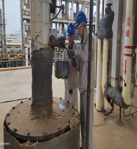 下午在氯化氫一期三樓檢查干燥塔溫度計,首先從庫房里拿腳手架并搬到氯化氫三樓,一個人監(jiān)護,一個人登高,還有一個人小心的扶著腳手架。登高的人在腳手架上我們看著真威風,安全帶掛好后,同事給傳遞著工具,他拿起扳手將四個法蘭上的螺栓慢慢擰下來,一點一點將溫度計從法蘭里取出來,檢查沒有問題的時候,將生銹的四顆螺栓進行處理,并涂抹上黃油。法蘭與溫度計之間的墊子更換后緊緊纏上生料帶,在把溫度計慢慢的放到法欄里面,并將四顆螺栓緊固,周邊都涂抹上黃油,包裹上塑料膜,做好相應(yīng)的防護后,今天下午檢查工作就圓滿完成。我們把現(xiàn)場的垃圾進行清理,做到工完料盡場地清。