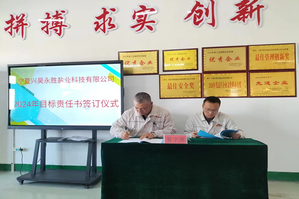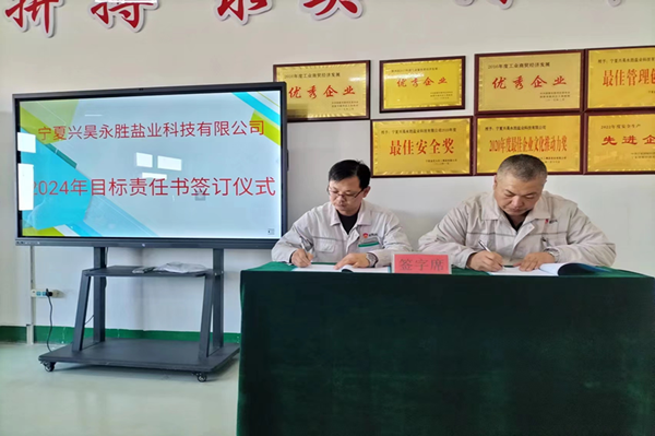 2024年1月8日下午,鹽業(yè)公司組織召開了2023年度總結(jié)表彰暨2024年目標(biāo)責(zé)任書簽訂大會(huì)。會(huì)議由總經(jīng)理尚繼榮同志主持,副經(jīng)理、科室長(zhǎng)、裝置長(zhǎng)、受獎(jiǎng)人員及員工代表參加。
