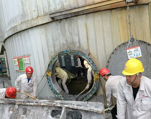 人在專注干一件事的時(shí)候是最帥氣的,盡管他們身上滿是油污,也掩蓋不住他們認(rèn)真、擔(dān)當(dāng)和富有責(zé)任感的品質(zhì)。他們把每一次檢修都當(dāng)成一次全新的挑戰(zhàn),把每一次檢修都當(dāng)做一次經(jīng)驗(yàn)的積累,一張張布滿油污、灰塵的面孔,綻放出最為清澈和動(dòng)容的笑容。你看,脫硫塔檢修現(xiàn)場(chǎng),他們?cè)跐M是泥水的脫硫塔內(nèi)來(lái)來(lái)回回奔跑了無(wú)數(shù)次,泥污沾滿了全身每一個(gè)地方,不知是汗水還是泥水打濕了衣服。他們干活不分你我、不惜力氣、相互配合,安全高效地完成了料液清理工作,為脫硫塔消漏、防腐做好了準(zhǔn)備工作。