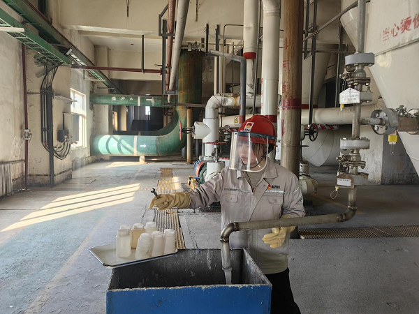 她們拎著貼好標(biāo)簽的取樣瓶,快步走向鹽硝廠房的各個取樣點,回來時,取樣瓶里裝著各色各樣的樣品,有的是晶瑩剔透的液體,在瓶中輕輕晃動,泛起細(xì)碎的漣漪;有的是白色的晶體顆粒,隨著腳步的顛簸,發(fā)出“沙沙”的輕響;還有的是粘稠的漿液,掛在瓶壁上,緩緩滑落。將樣品放置在滴定檢測區(qū)的那一刻,瓶身與臺面碰撞,發(fā)出“叮”的一聲脆響,像是為接下來的化驗工作,敲響了開場的鼓點。