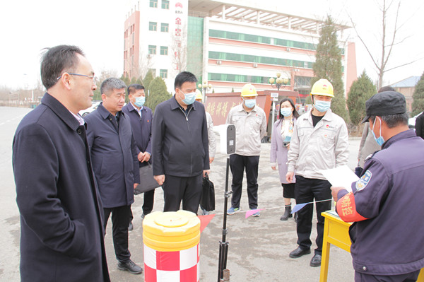 調(diào)研組深入一線,了解集團公司疫情防控情況,并聆聽工作人員宣讀《入廠安全教育》。