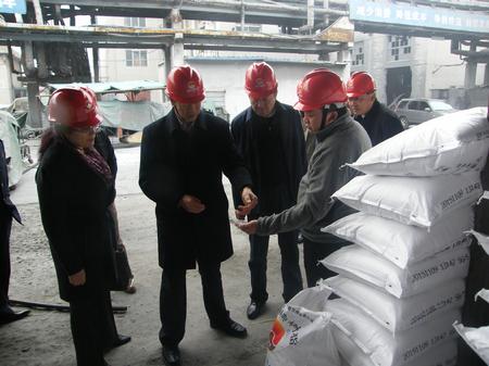 金昱元公司董事長(zhǎng)代良云為自治區(qū)國(guó)稅局副局長(zhǎng)陳連書介紹公司主要產(chǎn)品PVC樹脂的生產(chǎn)過程